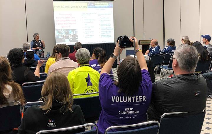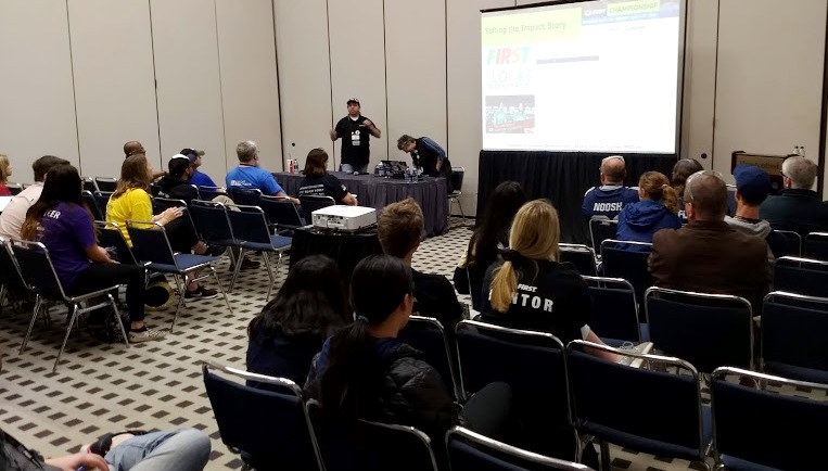 This year, we were fortunate to attend the FIRST Championship with the majority of our board, as well as with program partner, Scott Ertz, of PLuGHiTz Live and FIRST Looks.  With so many of us on site, we were able to spend more time speaking with more people and learning as much as we could about work being done in other communities to improve access to FIRST programs nationwide.